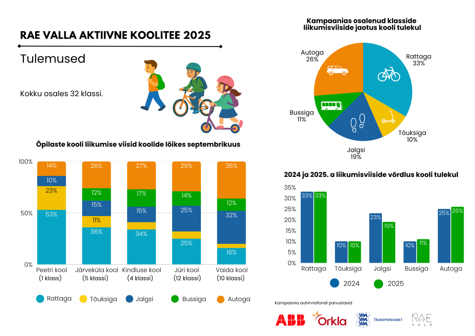 Suur tänu kõigile õpetajatele, lasteaia- ja koolijuhtidele ning lapsevanematele, et suunate oma õpilasi aktiivsemalt liikuma. Täname ka kampaania sponsoreid: ABB, Orkla Eesti ja transpordiamet, kes koos vallaga jagasid lastele toredaid, maitsvaid ja liikumist soodustavaid auhindu.