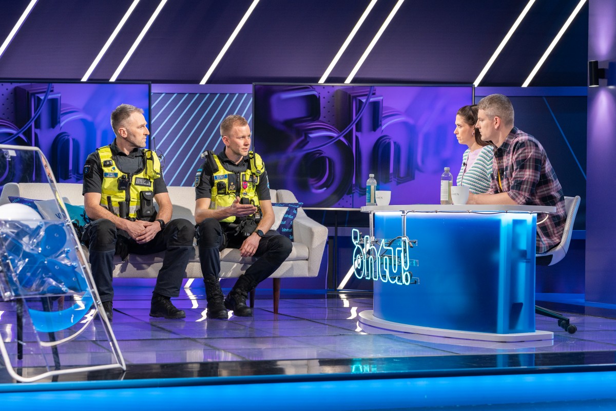 Foto 1: Margus (vasakult teine) kuulub MTÜ Eesti Abipolitseinike Kogu juhatusse ning käib tihti abipolitseiniku ametit tutvustamas. Pildil saates Õhtu. Foto: Illimar